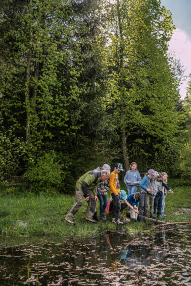 Viermal besuchen wir denselben Ort im Wald und erleben die verschiedenen Entwicklungen mit allen ihren unterschiedlichen Stimmungen im Lauf der Jahreszeiten. Im Frühling beobachten wir, wie die Vegetation aus ihrem Winterschlaf erwacht und neue Blätter aus den Knospen schlüpfen. Im Sommer erkunden wir den Boden und suchen nach Kleinlebewesen. Der Herbstwald verzaubert uns mit seinen Farben und Formen, die wir mit allen Sinnen aufnehmen. Der Winter ist die Zeit der Ruhe, aber auch der Holzernte im Wald. Wir können Tierspuren im Schnee verfolgen und gefällte Bäume genauer untersuchen. Die vertiefte und regelmässige Naturbegegnung macht den speziellen Reiz dieses Programmes aus.